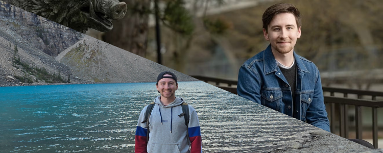 Nathanial during his time at Waterloo (right) and on a hike in Alberta where he now teaches (left).